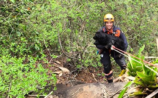 A Defesa Civil de Ibiraçu, em parceria com o Corpo de Bombeiros e a ONG Patinhas, realizou na tarde do último dia 25 uma operação que terminou com o resgate bem-sucedido de “Negão”, um cachorro que havia caído em um despenhadeiro em uma fazenda do município.